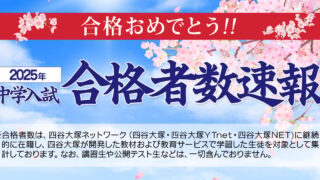 合格者数は、四谷大塚ネットワーク(四谷大塚・四谷大塚YTnet・四谷大塚NET)に継続的に在籍し、四谷大塚が開発した教材および教育サービスで学習した生徒を対象として集計しております。なお、講習生や公開テスト生などは、一切含んでおりません。